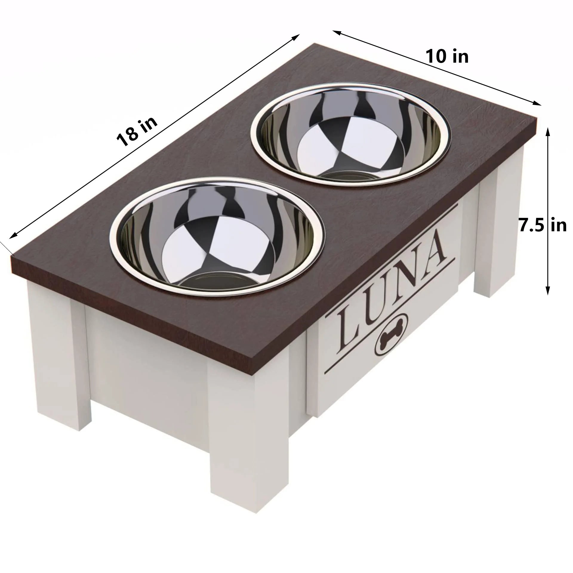 Raised Dog Bowl Stand With Storage And Double Bowls